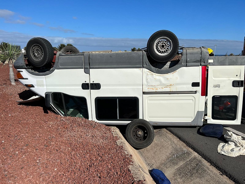 Se trata de una furgoneta que tuvo un accidente en la LZ-2; en el interior de la misma el conductor quedó atrapado