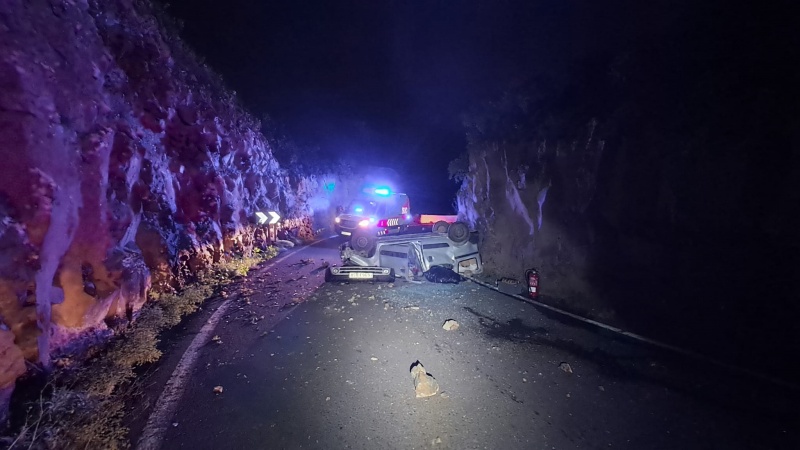 El vuelco de un vehículo en el kilómetro 16 de la carretera LZ 10, a la altura de las curvas de Malpaso en Haría ha sido mortal para el conductor y único ocupante del mismo.