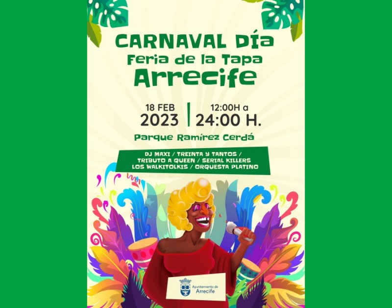 El Ayuntamiento de Arrecife que preside Astrid Pérez, a través del área de Turismo que dirige Armando Santana, ha organizado la celebración de la Feria de la Tapa que tendrá lugar en el parque “José Ramírez Cerdá”, este sábado 18 de febrero entre las 12:00 horas y la medianoche, dentro de los eventos del carnaval de Arrecife 2023.