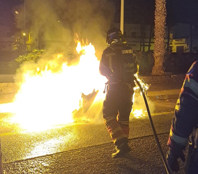 En este caso se trataba de un vehículo y un contenedor de basura que ardían en su totalidad. Las llamas empezaban a propagarse a otro vehículo.