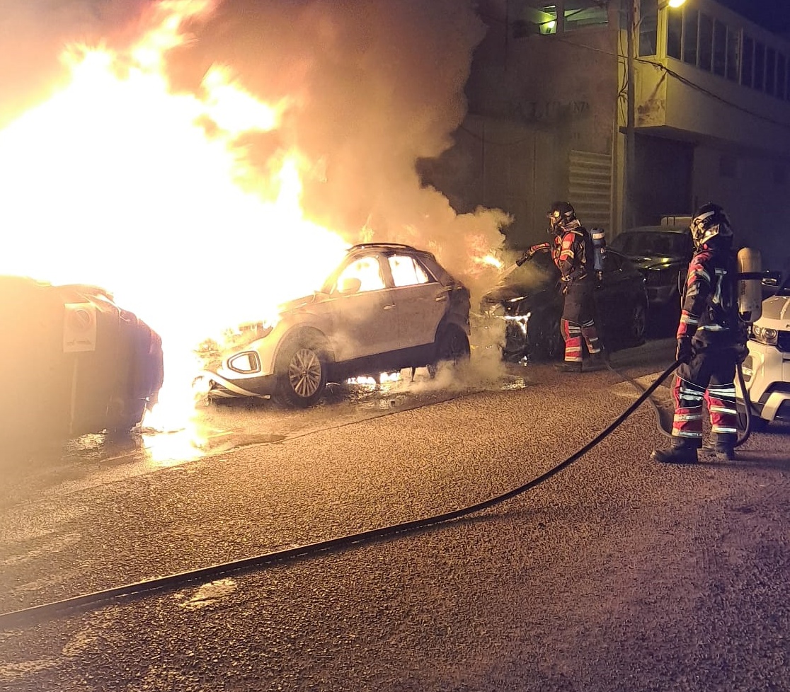 Dos vehículos y dos contenedores quemados en otra noche de fuego y un tercer coche afectado por el calor de las llamas