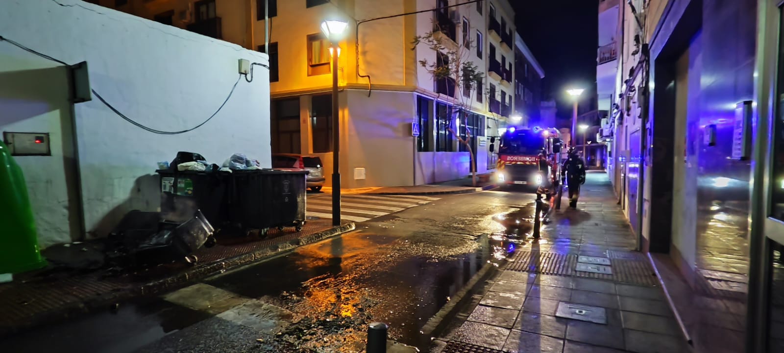 Mientras terminaban las labores de extinción, recibieron una segunda alerta de otro incendio de contenedores en la calle Francos. Junto a la Policía Local, se dirigieron al lugar donde ardía un contenedor de forma generalizada. El incendio se extinguió por completo.
