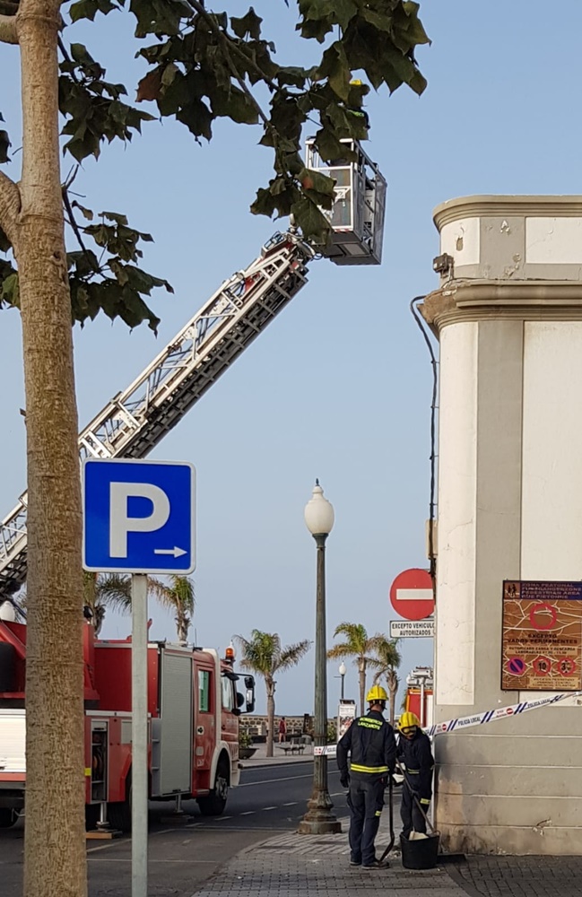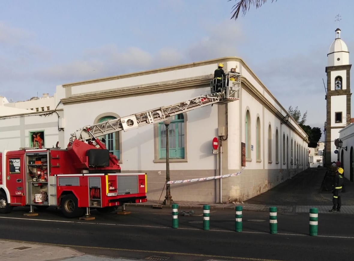 Esta mañana sobre las 8.10 horas los bomberos del Consorcio de Seguridad y Emergencias de Lanzarote acudieron al edificio de la avenida marítima avisados por la Policía Local de la capital para recoger los trozos y delimitar la zona.