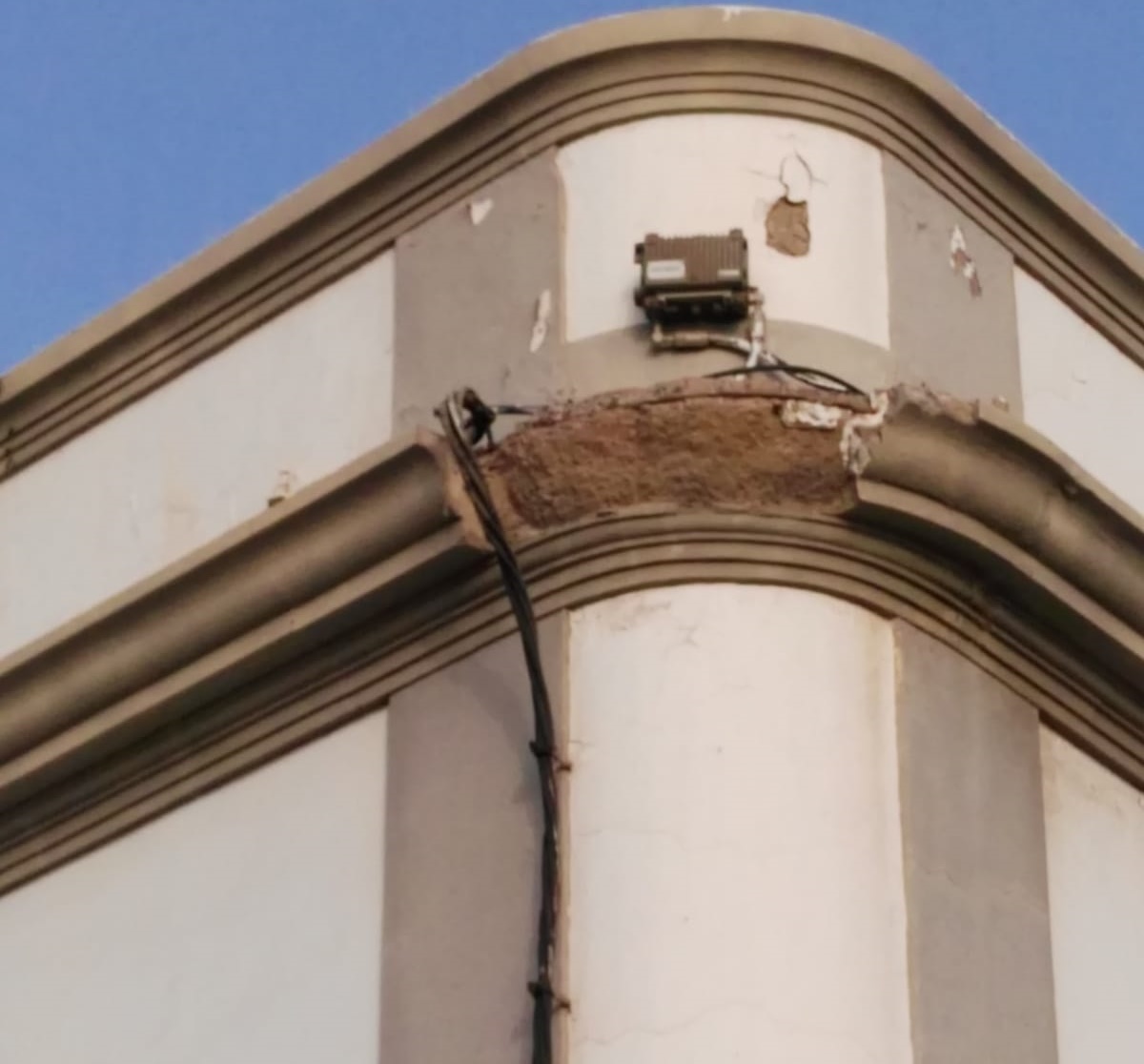 El edificio de la Oficina Técnica de Arrecife está sufriendo un deterioro importante y por ello ya son varias las veces en las han caído a la vía pública trozos de la fachada. Afortunadamente a la hora de la caída no estaba tan concurrida esta zona donde se encuentran las administraciones de la capital y por donde pasa mucha gente a diario.
