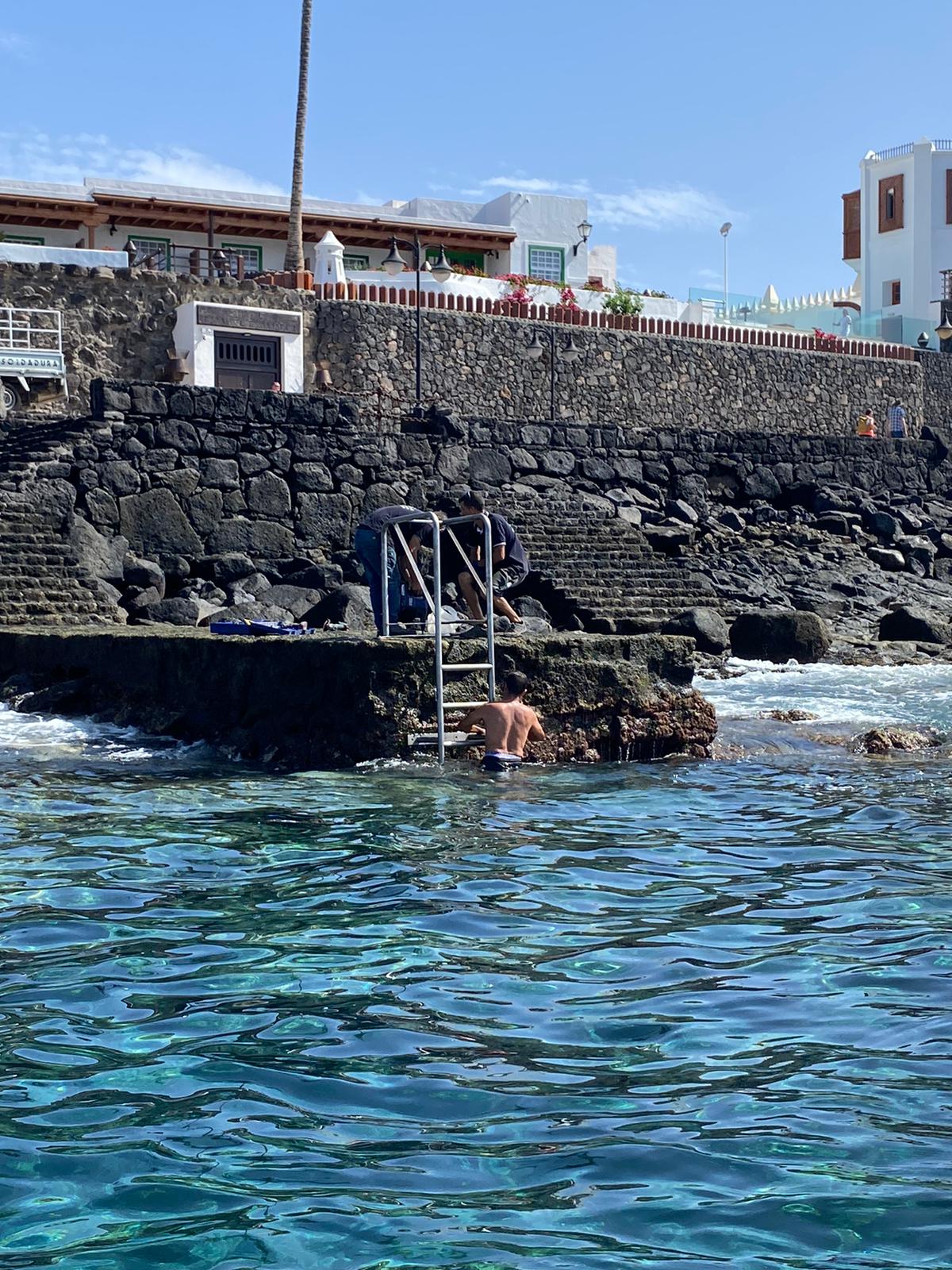 De esta manera, los vecinos y turistas de la zona podrán de nuevo subirse al empedrado con la ayuda de las escaleras y disfrutar de las limpias aguas sureñas.