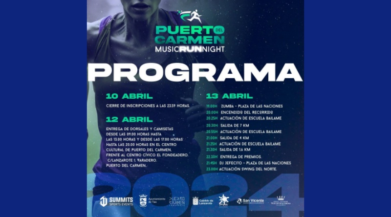La primera carrera nocturna de la zona turística del municipio de Tías, Puerto del Carmen Music Night Run, cuenta con 570 inscritos, atletas profesionales y aficionados de distintos niveles que recorrerán mañana la Avenida de las Playas desde la Plaza de las Naciones, en la plaza de Los Pocillos, hasta la zona de Matagorda previa al aeropuerto y regreso.