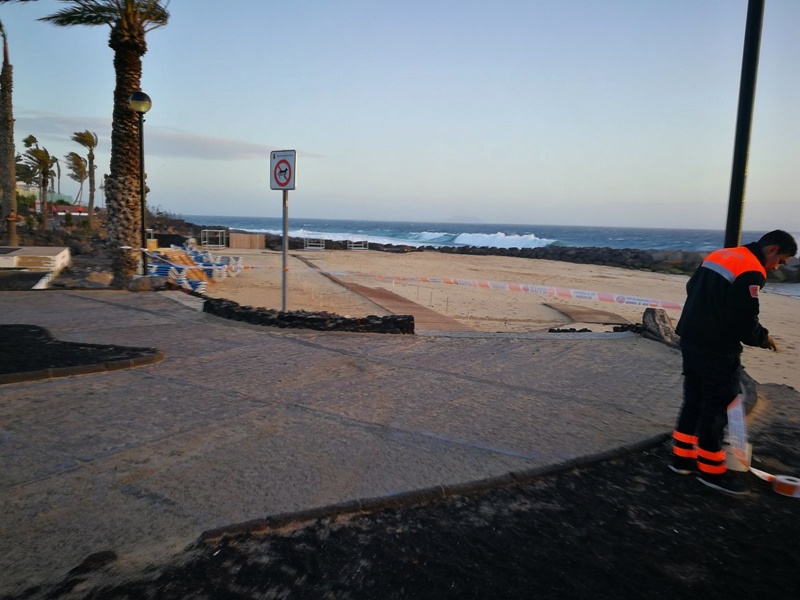 Yaiza cierra los accesos a las playas por el mal tiempo