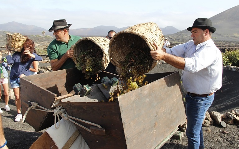 El Ayuntamiento destaca que en pleno mes de agosto, "alrededor de la pequeña y coqueta ermita de La Geria, entre bodegas, parras, y el ajetreo de camellos, cestones, vendimiadores y un montón de residentes y turistas, se recrea, en plan festivo, el proceso de la recolección de las uvas y elaboración del vino de la forma más tradicional". Los turistas y residentes pueden apreciar la dificultad de cortar los racimos uno a uno, de transportar las uvas en medio de tantos hoyos y con tanta arena y, luego, el proceso de pisado, en la que los pies desnudos de los propios campesinos estrujan la uva para que se desborde su zumo que, más tarde, descansará en la barrica, hasta ganar el cuerpo necesario y convertirse en uno de los manjares de esta tierra.