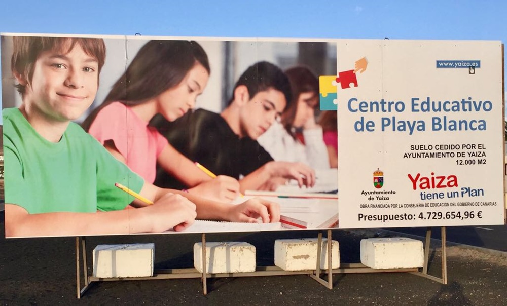 Coalición Canaria en el sur de la isla criticaba la semana pasada que la alcaldesa, Gladys Acuña, se "apropiaba" de la obra del nuevo colegio de Playa Blanca, colocando dos grandes carteles "con un claro interés electoral en Playa Blanca pagados con dinero público", anunciando un Centro Educativo en Playa Blanca, que se está financiando con dinero del Gobierno de Canarias que preside Coalición Canaria.