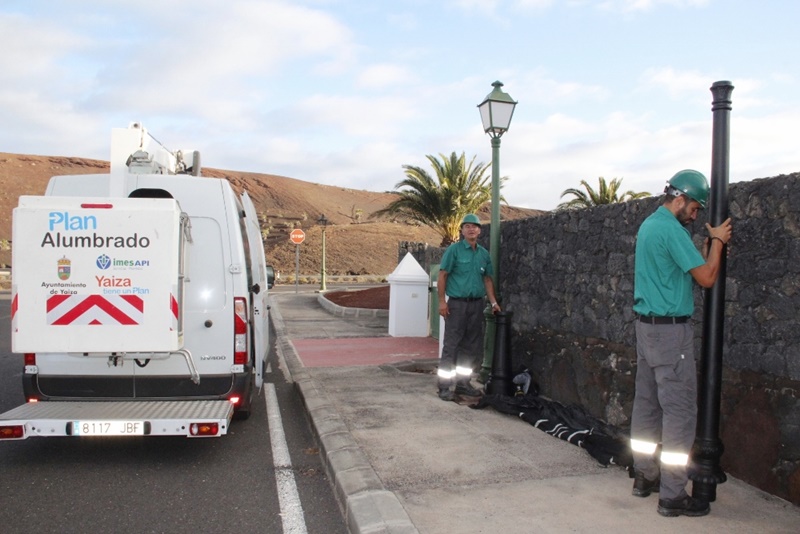 Según destaca la nota del Ayuntamiento de Yaiza, el concejal de Obras de Yaiza, Jonatan Lemes, ha explicado que el ritmo actual de trabajo supone la sustitución "de unos 30 báculos y 30 luminarias diarias a fin de terminar cuanto antes la fase de reposición de material. Aparte de la instalación de luminarias tipo villa con lámparas led, y báculos en los pueblos de Yaiza, el Ayuntamiento ya había renovado columnas y puntos de luz en calles céntricas del núcleo turístico de Playa Blanca mejorando su eficiencia energética e imagen".