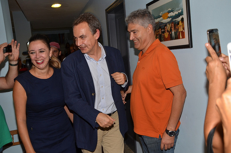 La dirección del PSOE conejero ejerció de anfitriona de Zapatero. No faltaron ni la secretaria insular, Dolores Corujo, ni el secretario de Organización, José Juan Cruz, en una sede que estuvo abarrotada por militante deseosos de oír hablar al que fuera su líder.