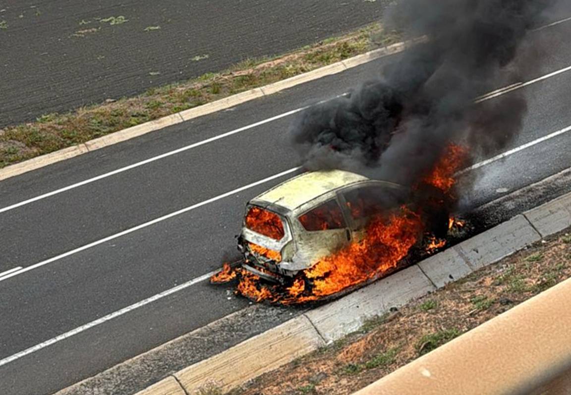 Las llamas dejaron el coche inutilizable, que provocó largas retenciones (vídeo en el interior)