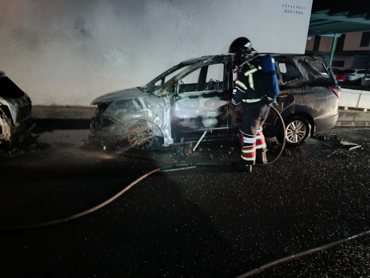 Un tercer vehículo ardía en la Rambla Medular de Arrecife en la tarde del martes