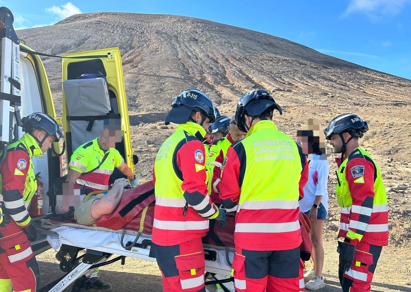 El accidentado fue rescatado en camilla usando un sistema de tracción de cuerdas