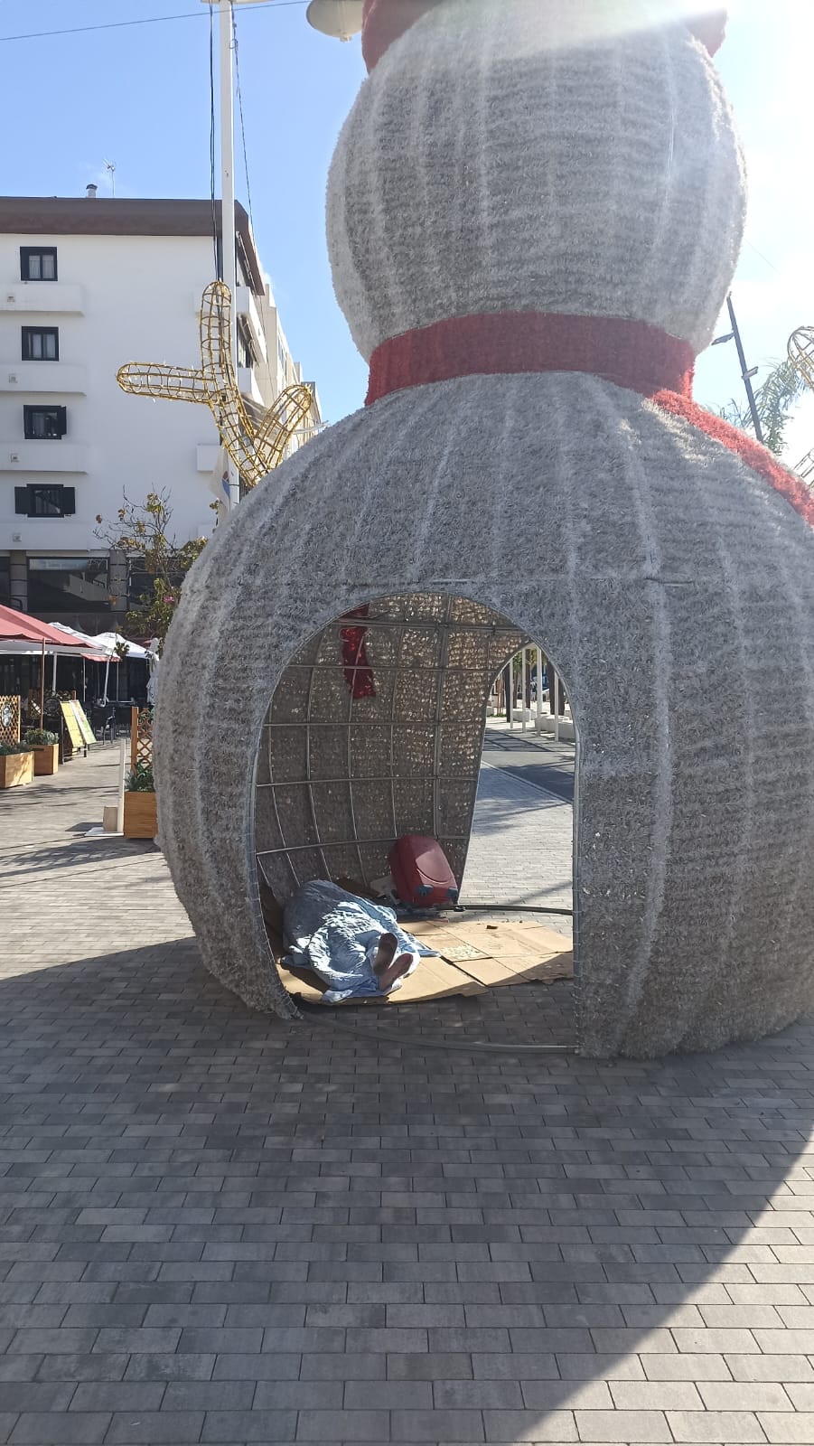 Un “sintecho” pernocta dentro de una de las infraestructuras instaladas en la vía pública durante las pasadas Navidades