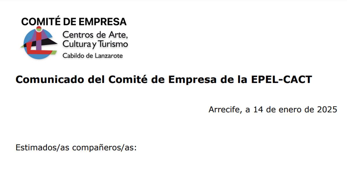 El Comité de Empresa de los CACT se defiende de las "críticas" de los antiguos representantes sindicales cercanos al anterior consejero delegado, Benjamín Perdomo