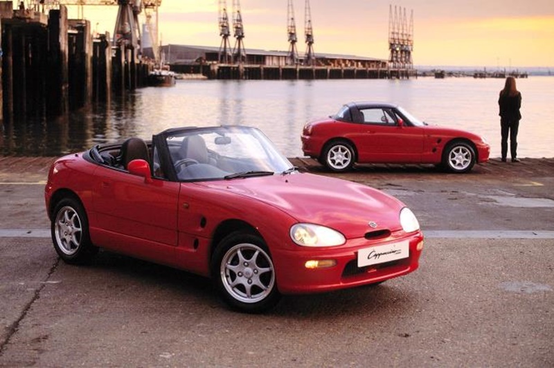 Suzuki lanzó a finales de los ‘80 un divertido deportivo biplaza Kei, con solo 3,3 metros de largo y un peso ligero de 725 kg. El Suzuki Cappuccino fue todo un éxito, con su diseño bajo, cabina de dos asientos y un motor central que le otorgaba un reparto de peso del 50%. Se lanzó en 1987 en Japón, pero su atractivo no pasó desapercibido en el extranjero y en 1993 se adaptó una variante para el mercado británico, que también llegó a otros países europeos.