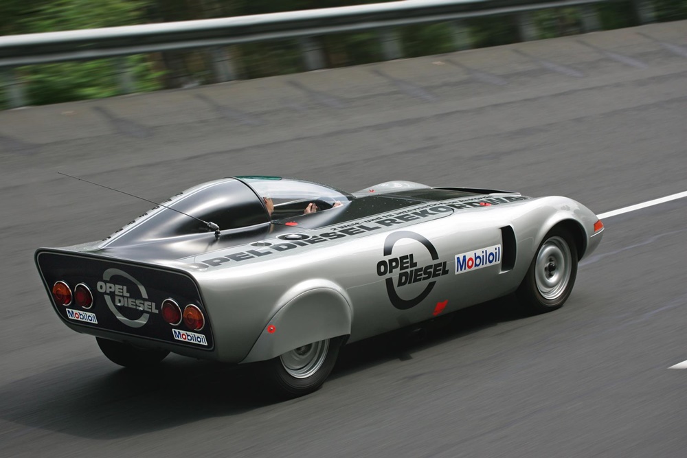 Con su bajo centro de gravedad, su rígida carrocería y su dinámico chasis, el GT era una base ideal para competición. Por ejemplo, los GT preparados por el especialista italiano Conrero obtuvieron múltiples triunfos en carreras de resistencia a principios de los años 70. Posteriormente, en 1971, el Dr. Georg Von Opel, nieto del fundador de la marca, convirtió el GT en un coche eléctrico, alcanzando una velocidad máxima de 189 km/h y estableciendo varios récords mundiales. Y, en junio de 1972, Opel construyó un GT con motor diesel que logró dos récords mundiales y 18 records internacionales en la pista de pruebas de Dudenhofen. La velocidad máxima de 197 km/h a lo largo de un kilómetro era una cifra sensacional para un coche diesel de la época. Erhard Schnell, diseñador del GT, confiesa como lograron una forma aún más aerodinámica: “Teníamos muy poco presupuesto, así que cogimos un coche que estaba destinado a ser descapotable y, simplemente, le cortamos el parabrisas”.
