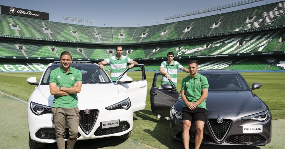 El Real Betis Balompié y Fiat Chrysler Automobiles Spain acaban de firmar un acuerdo de patrocinio para la temporada 2017/2018, por el que Alfa Romeo se convierte en Vehículo Oficial del Club verdiblanco. El logotipo de la prestigiosa marca italiana y sus flamantes Alfa Romeo Stelvio, entre otros modelos del fabricante, estarán presentes dentro y fuera del Estadio Benito Villamarín y la Ciudad Deportiva Luis del Sol. Con motivo de este acuerdo, la plantilla bética y el cuerpo técnico disfrutarán de la cesión de una flota de vehículos Alfa Romeo, entre los que destaca el nuevo modelo Stelvio. A través de este acuerdo, Fiat Chrysler Automobiles Spain proveerá de vehículos oficiales a los primeros equipos de fútbol y baloncesto del Real Betis.