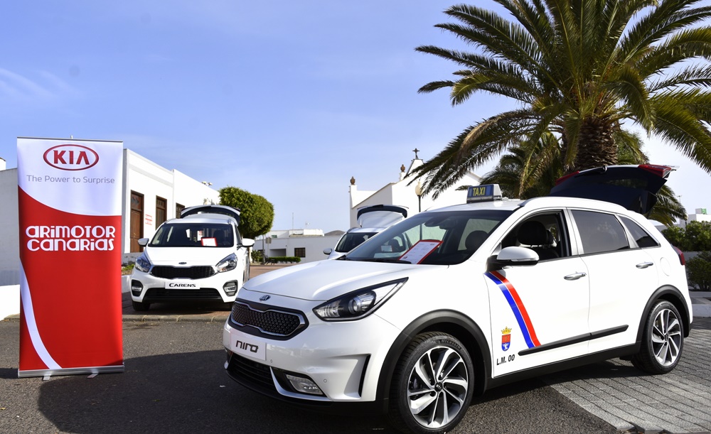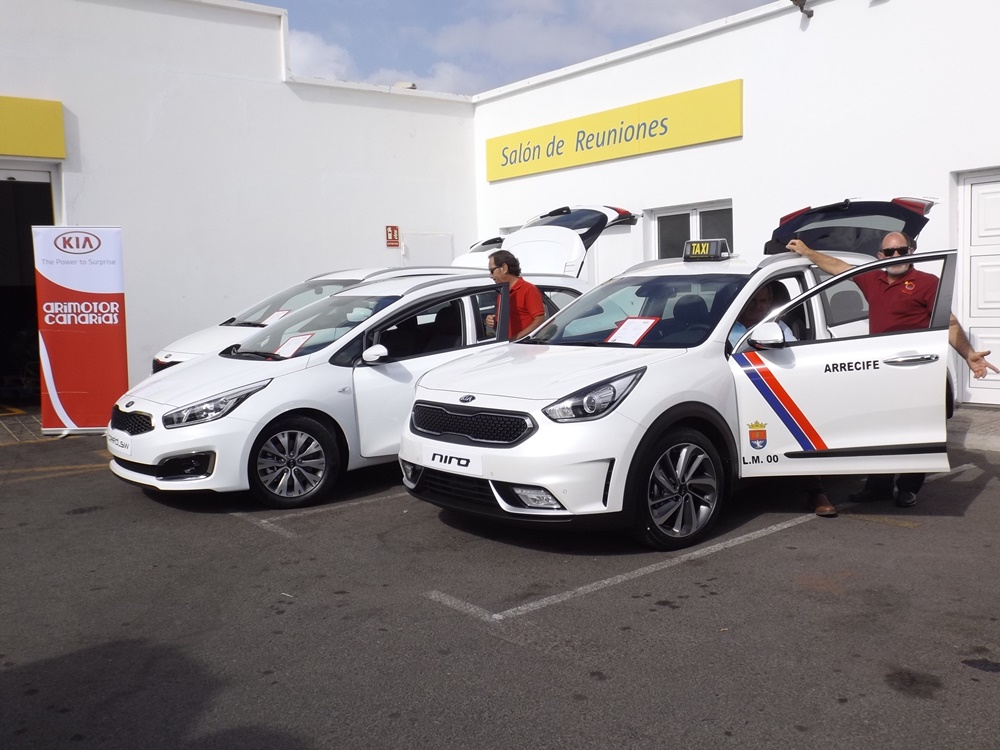 Arimotor con siete meses de presencia en Lanzarote como único concesionario y servicio oficial postventa KIA, mostró tres modelos ideales para el trabajo diario de los taxistas. Uno de ellos híbrido, el KIA Niro, del que ya circula una unidad en la flota de Teguise con la licencia nº 5. También se mostraron los diesel Kia cee´d SW Active S y el Carens Family de 5 y 7 plazas.
