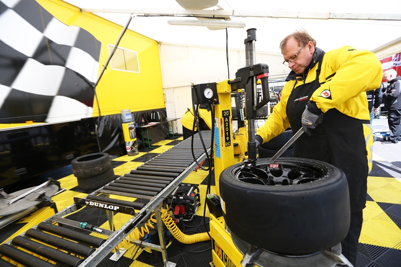 Las exigentes demandas de la carrera más grande del mundo en el Nürburgring-Nordschleife suponen un requisito importante para los neumáticos: 17 camiones de servicio transportan más de 4.000 neumáticos de carrera a Nürburgring. Esto permite a Dunlop ofrecer una amplia gama de especificaciones para todas las condiciones de pista y condiciones meteorológicas. El Nürburgring-Nordschleife es único: 33 curvas a la izquierda, 40 curvas a la derecha, gradientes de hasta el 17% y camber de hasta el 11% en los 20,8 kilómetros de pista. En una sola vuelta, los pilotos pueden experimentar tantos elementos como los de otras series de carreras en toda una temporada. A 620 metros sobre el nivel del mar, el conductor puede alcanzar el punto más alto de la pista al principio, tocar el cielo, y luego caer 300 metros en el valle hasta el punto más bajo en Breidscheid (320 metros), donde está lloviendo. El saber hacer y la experiencia de los ingenieros de neumáticos de Dunlop son particularmente importantes en climas variables. Más de 50 ingenieros de neumáticos y personal de servicio están en funcionamiento de jueves a domingo para proporcionar a los equipos los neumáticos y el apoyo necesario para luchar en las 24 horas de Nürburgring.