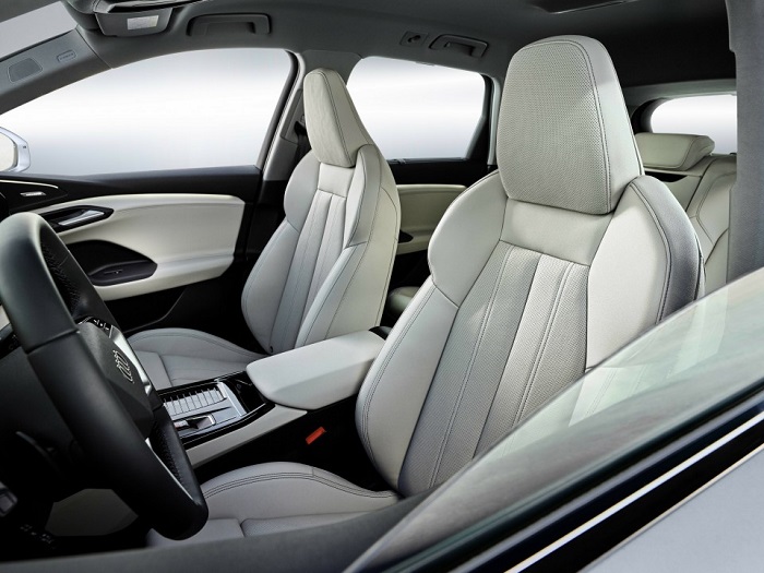 El interior presenta estructuras claras y un ambiente confortable. El denominado Softwrap se extiende desde las puertas hasta la consola central, creando una sensación de espacio homogénea y acogedora. Los colores y los materiales de alta calidad, algunos de ellos fabricados con componentes reciclados, también se utilizan en los asientos.