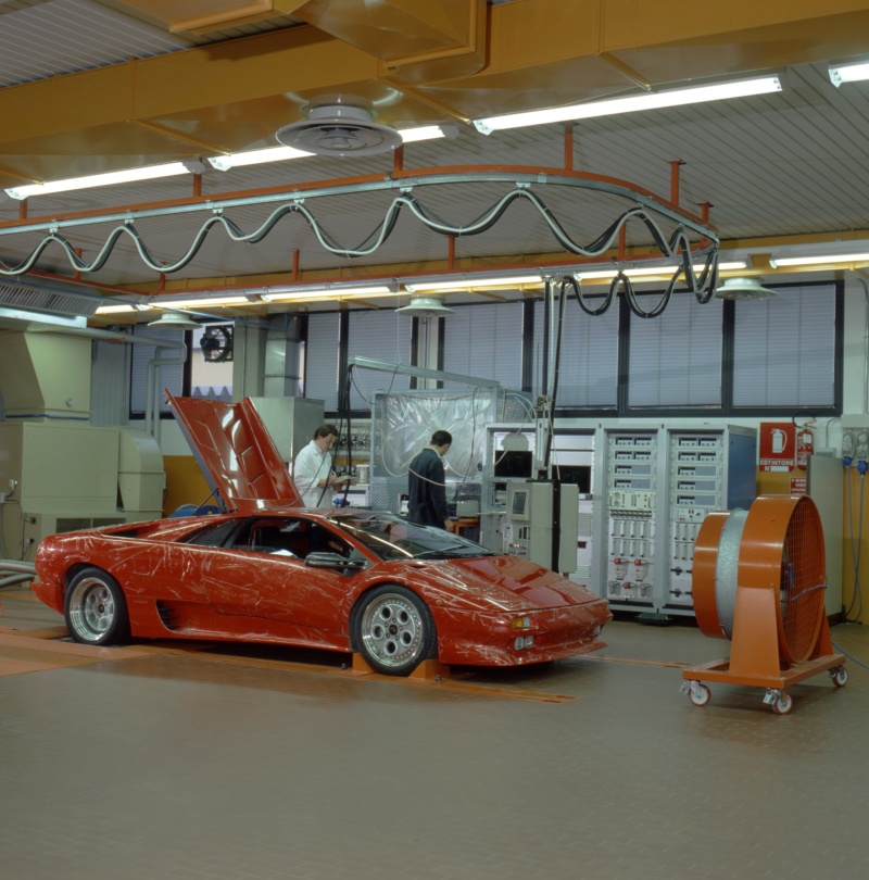 Al unirse a Audi en 1998, la velocidad de desarrollo de Lamborghini creció exponencialmente, al igual que el número de coches producidos y el número de empleados. En el año 2000, Lamborghini produjo 296 coches y empleó a 440 personas; en 2001, se completó la renovación de la sede, la primera después de muchos años, que supuso la construcción de un nuevo edificio de oficinas, un museo de dos plantas y una nueva área de investigación y desarrollo, además de la inversión en líneas de montaje y un comedor que se completaron en agosto de 2001 por un total de 155 millones de euros.