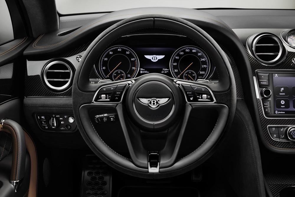 El sistema de escape, dotado de un sonido todavía más característico al arrancar y cambiar de marcha, se combina con una suspensión más firme para mejorar la experiencia del conductor. La tracción en las cuatro ruedas continua del Bentayga ofrece una manejabilidad líder en su clase en cualquier entorno. Por su parte, los potentes frenos de cerámica, disponibles como opción, son los más potentes y de mayor tamaño jamás utilizados en un Bentley, con un par de frenado máximo de 6.000 Nm y diseñados para resistir temperaturas de hasta 1.000 °C. Además, pesan 20 kg menos que los frenos de hierro.