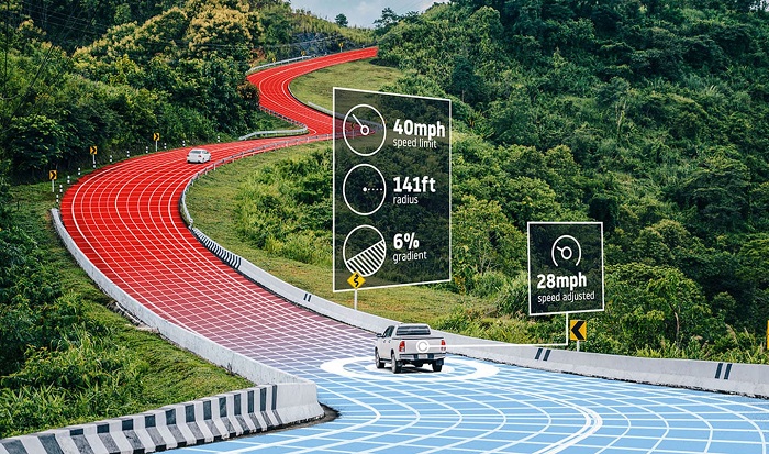 Por ejemplo, los datos de alta precisión sobre la curvatura y la pendiente de la carretera ayudan a los sistemas de control de crucero predictivo a frenar y acelerar de forma proactiva. También ayudan a los sistemas ADAS de guiado y el mantenimiento del carril en tramos de autopista y en cruces complejos, requieren una valiosa información del número de carriles, sus conexiones, el tipo de divisor entre ellos o la forma de los cruces. Los mapas de los sistemas de navegación también ofrecen información a los sistemas ADAS sobre los límites de velocidad de las vías, semáforos o señales de tráfico.