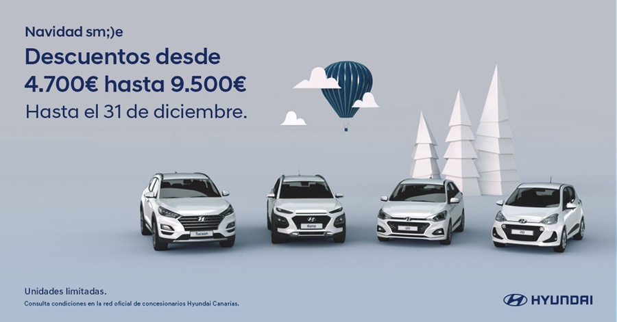 Estas fiestas, unidades de stock limitadas de toda la gama de vehículos Hyundai estarán al alcance de los clientes canarios con importantes descuentos que van desde los 4.700 hasta los 9.500 euros, hasta el 31 de Diciembre (o fin de existencias).