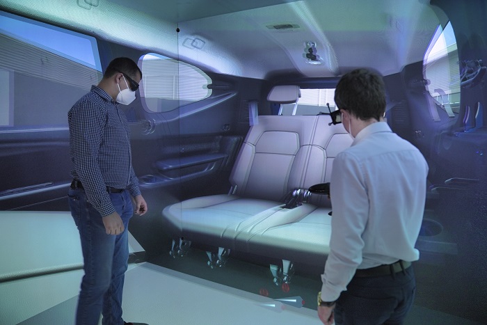 El vehículo puede modificarse en unos pocos clics, después de un examen completo que se realiza con gafas 3D y gracias a las múltiples interacciones entre los técnicos de ensayo. De hecho, todo se prueba con la precisión que proporciona los seis millones de píxeles: la ergonomía de los mandos del salpicadero, la visibilidad en los distintos rincones del vehículo, la accesibilidad, el confort e incluso el diseño.