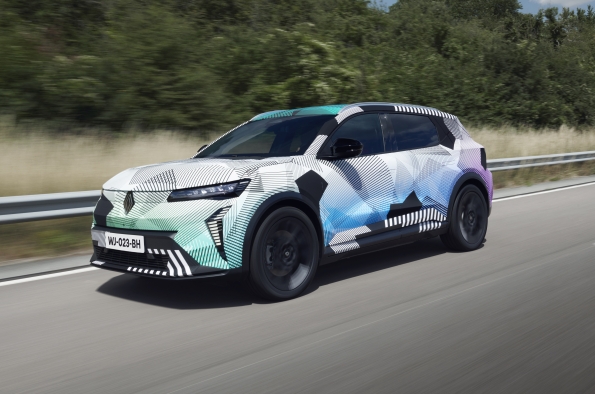 El modelo revela su silueta definitiva bajo un camuflaje diseñado por Reault Design para la ocasión que se inspirar en el logo de la marca. Fabricados en el seno de ElectriCity, en Douai, varios vehículos de preproducción llegarán a las carreteras europeas a partir de este verano conducidos por ingenieros de Renault.