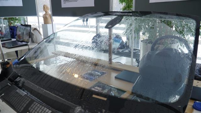 Los ingenieros de Ford que oyeron hablar de esta idea se quedaron tan sorprendidos que ofrecieron instalar un dispositivo a tamaño real en un Ford S-MAX de pruebas. Para recoger el agua, unos conductos de goma conectaban la parte inferior del parabrisas con el depósito de agua.