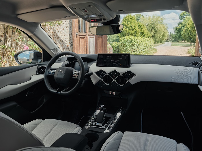 En el exterior, la firma Esprit de Voyage se muestra en las puertas delanteras y las carcasas de los retrovisores presentan un patrón específico grabado con láser, adaptado para sugerir movimiento y aerodinámica y, por lo tanto, simbolizar el viaje. En la parte delantera, la parrilla presenta DS Wings en Negro Brillante y una parrilla Negro Brillante con inserciones cromadas.