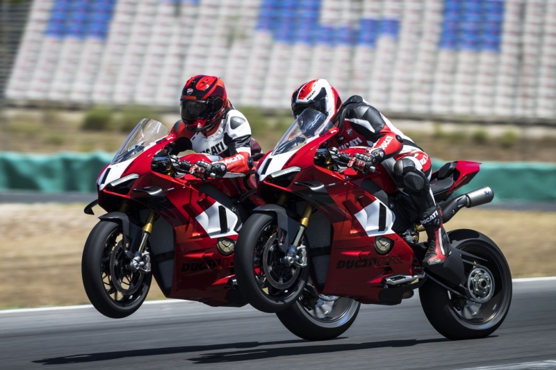 Su corazón es el Desmosedici Stradale R de 998 cc, un motor capaz de alcanzar un régimen máximo de 16.500 rpm en sexta marcha y entregar una potencia máxima de 218 CV a 15.500 rpm, valores absolutos de referencia en el segmento de las motos supersport de la misma cilindrada. Sin embargo, todo el potencial de este motor se expresa en pista al montar el escape racing en combinación con un aceite especial desarrollado por Shell en colaboración con Ducati Corse, que elevan la potencia máxima de la Panigale V4R hasta los 240,5 CV.