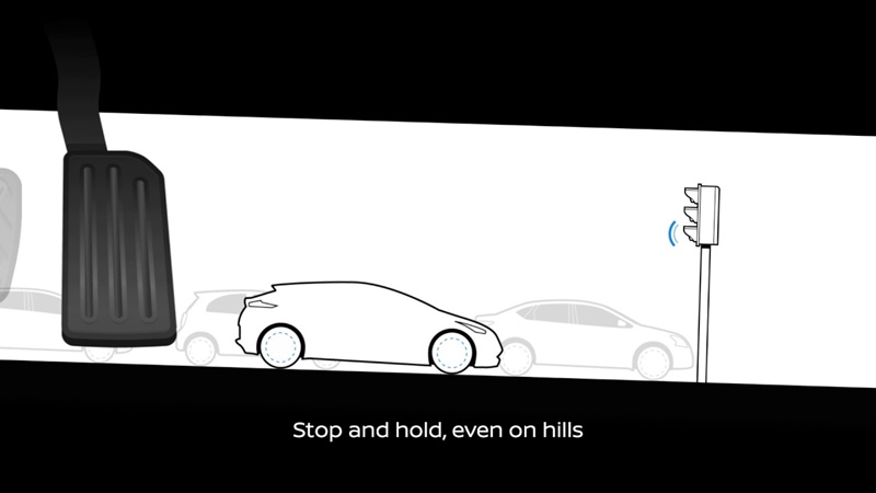Esta tecnología se activa mediante un interruptor que convierte el acelerador en el e-Pedal y permite al conductor acelerar, frenar y parar el vehículo utilizando únicamente el pedal del acelerador. La tecnología e-Pedal es la primera en el mundo con un pedal que en una sola operación permite al conductor frenar el vehículo totalmente incluso en pendiente, mantener su posición y retomar la marcha de forma inmediata.