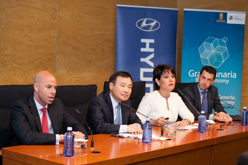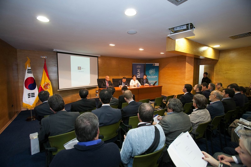 El acto contó con la presencia del embajador de Corea en España, Sr. D. Hee Kwon Park, quien transmitió estar muy contento con su visita y con la presentación de este proyecto que espera sea una realidad, comenzando en Canarias. Junto a él se encontraba Jimena Delgado, directora gerente de SPEGC, Gonzalo Piernavieja, director técnico de la división de I+D del Instituto Tecnológico de Canarias (ITC), y Carlos López, Managing, director en Hyundai Motor España. Carlos López se encargó de transmitir las ventajas del Fuel Cell en las que está trabajado Hyundai Motor Company y los próximos pasos de la marca en relación a la penetración en mercado con esta novedosa tecnología.