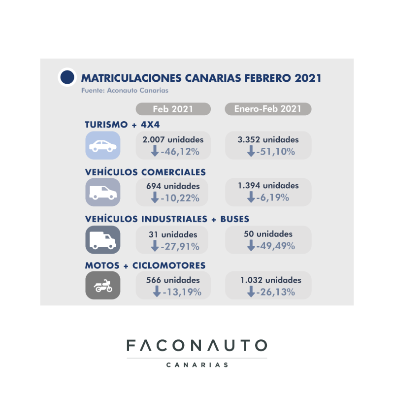 "Estamos atravesando un momento muy complicado. En los dos primeros meses ya acumulamos la misma caída que durante todo el 2020. El músculo financiero de nuestras empresas empieza a debilitarse y nos preocupa la empleabilidad de nuestro sector”, ha declarado el presidente de Faconauto Canarias, Manuel Sánchez, tras conocer los datos del mes de febrero.