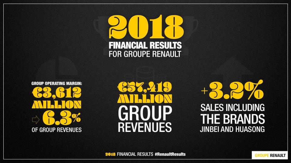 «El Grupo Renault ha mantenido en 2018 unos resultados históricos a pesar del deterioro de su entorno. Los resultados comerciales y financieros demuestran la resiliencia de la empresa y su rapidez para adaptarse a un ambiente más complicado. Estos resultados son producto de una estrategia clara, de una ejecución cada vez más exigente y de los esfuerzos de todos los colaboradores del Grupo», ha declarado Thierry Bolloré, Director General de Renault.