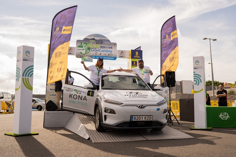 La isla de Gran Canaria ha sido testigo este fin de semana del triunfo de Hyundai Canarias en eI I ECORally celebrado en Canarias. El equipo formado por Txema Foronda y Pilar Rodas, actuales campeones del Campeonato de España de Energías Alternativas 2019 organizado por la RFEDA en la categoría de eléctricos puros, se subieron al más alto escalón del podio gracias a la magnífica combinación entre su experiencia y el espectacular rendimiento del Hyundai KONA 100% eléctrico.