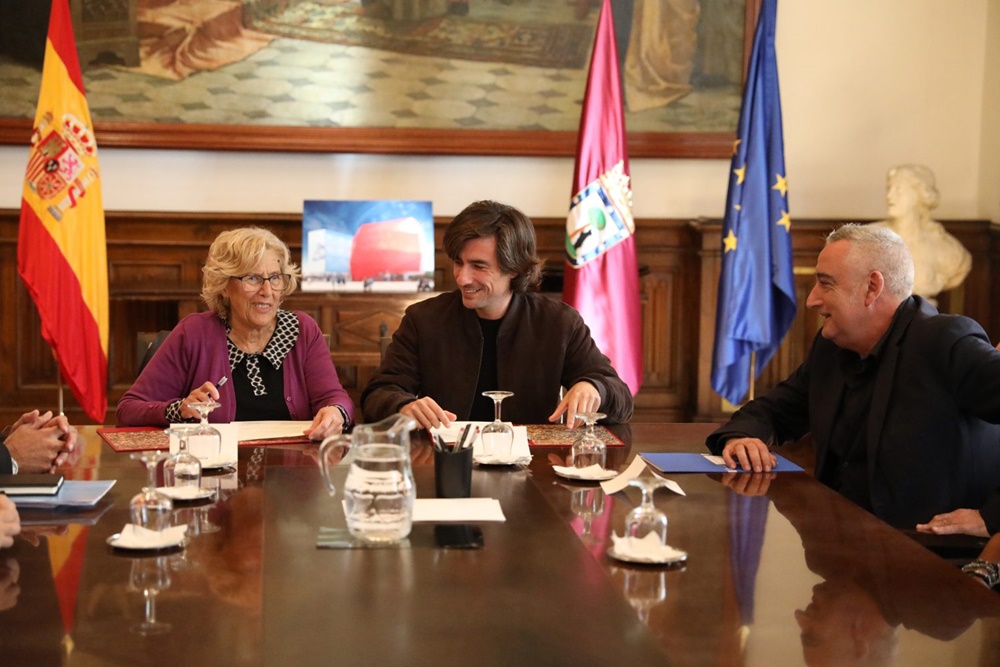 La alcaldesa de Madrid, Manuela Carmena, junto con el concejal de los distritos de Puente de Vallecas y Villa de Vallecas, Francisco Pérez Ramos, ha firmado una declaración de intenciones con Ángel Nieto (hijo), gracias a la cual se podrán iniciar los trámites para la construcción de la sede social de la fundación que lleva el nombre del campeón del mundo de motociclismo.