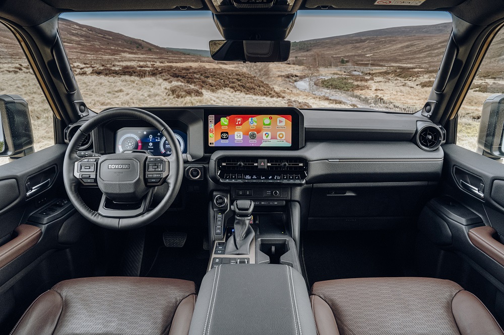 Una de las prioridades del diseño fue que el conductor disfrutara de la mejor visibilidad frontal y lateral posible. Así, se creó un capó con los laterales más elevados, de modo que resulta más fácil ubicar las esquinas del vehículo, y una parte central más hundida, que mejora la visibilidad frontal. Para mejorar la visibilidad lateral, el pilar A se ha colocado con un ángulo más vertical, los retrovisores se han unido a las puertas y la línea de cintura se ha rebajado –un guiño al clásico Toyota serie 70 – unos 30 mm con respecto al modelo actual.