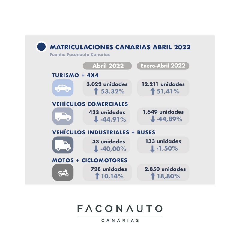 El mercado del automóvil de Canarias evoluciona a la sombra del mercado turístico. El principal motor económico de las islas continúa actuando como palanca de recuperación. El crecimiento de las matriculaciones por parte de las empresas de rent a car del archipiélago, un 757% con respecto a abril del año pasado, tira del mercado de turismos y 4x4 dejando un crecimiento total de las ventas del 53,3% con respecto al mismo periodo del año pasado.