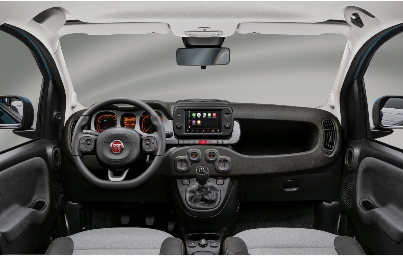 En concreto, el Nuevo Panda City Cross está diseñado para aquellos que buscan un coche urbano que se asemeje a un todoterreno pero con un precio asequible. Por lo tanto, es un vehículo con el que escapar de la rutina diaria, para sumergirse en emocionantes aventuras urbanas. Estéticamente, el nuevo modelo luce el novedoso color pastel Azul Cerámico, una combinación perfecta con la nueva tapicería de piel tecno de dos tonos (azul y negro) en los paneles de las puertas y asientos, estos últimos adornados con costuras plateadas y paneles laterales de tejido. En el centro del salpicadero se encuentra la nueva radio con pantalla táctil de 18 cm (7 ") (opcional) y el aire acondicionado automático que viene de serie. El nuevo Panda City Cross se complementa con luces diurnas de cruce de LED y elementos de color negro, look urbano.