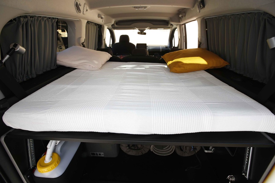 La modularidad que caracteriza desde siempre al Citroën Berlingo llega a un nuevo nivel en esta versión. En apenas unos minutos, un turismo de 5 plazas se puede transformar en un camper totalmente preparado para la aventura en plena naturaleza. En su configuración más aventurera, el habitáculo se puede convertir tanto en un dormitorio sobre el maletero y la fila trasera como en un salón-comedor, gracias a la mesa plegable y los asientos giratorios.