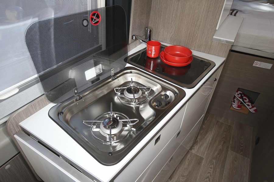 Por su parte, el Citroën Jumper Celebration 600, desarrollado en colaboración con Clever Vans, también con las prestaciones del BlueHDi 140 y la fiabilidad reconocida del Jumper, destaca por su cama doble trasera de 193x140 cm y su completo mobiliario en color roble. Dispone de un baño revestido en CPL con ducha, lavabo y WC y de cocina Dometic con dos fogones y fregadero y calefacción y agua caliente.