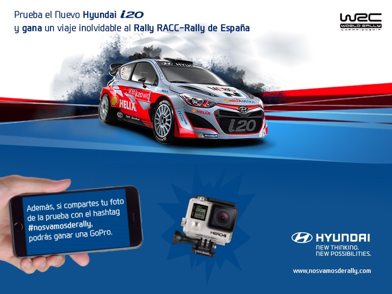 El próximo mes de octubre, España será sede de una de las fases decisivas de la competición mundial de rallyes más importante del año como el World Rally Championship. Hyundai Canarias quiere acercar a los seguidores de la marca a este emocionante evento sorteando un apasionante viaje para asistir al Rally RACC de Cataluña.