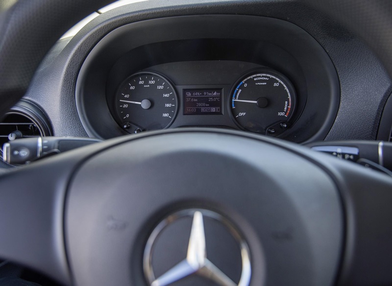 La energía es proporcionada por tres módulos de baterías de iones de litio situadas bajo del piso del vehículo Su ubicación baja y centrada no resta espacio de carga o habitabilidad y además contribuye a lograr un buen comportamiento dinámico. Con una capacidad de batería instalada de 41 kWh (35 kWh disponibles), la autonomía es de 150 km y después de tan solo seis horas de recarga, la autonomía completa estará disponible de nuevo. Mercedes-Benz Vans garantiza una capacidad mínima de las baterías del 70 % hasta 8 años o 100.000 km.