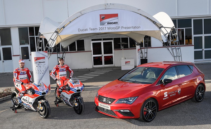 El acuerdo entre SEAT y los dos pilotos de Ducati se suma al existente entre las dos marcas, ya que el León CUPRA es también el coche oficial del equipo de competición de Ducati en MotoGP. Además de ser el vehículo oficial de la escudería, el acuerdo también incluye la presencia de SEAT en la parte frontal de la moto, así como en el mono de los pilotos y en el uniforme de los miembros del equipo.