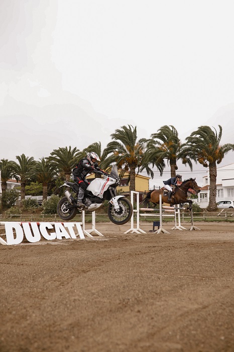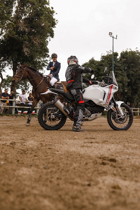 La nueva Ducati DesertX ya está en Canarias y con el fin celebrar la llegada de este modelo tan esperado por los apasionados del off-road, Ducati convocó a los medios de comunicación en la sección hípica del Real Club de Golf de Las Palmas para compartir un emocionante lanzamiento. Carlos Riaza, brand manager de la marca, fue el encargado de introducir la motocicleta, mientras que Jorge Gómez, gerente de ventas de Ducati Canarias y reconocido piloto del panorama canario, no dudó en demostrar lo divertida que puede llegar a ser la DesertX en un singular duelo con un experto jinete y su caballo.
